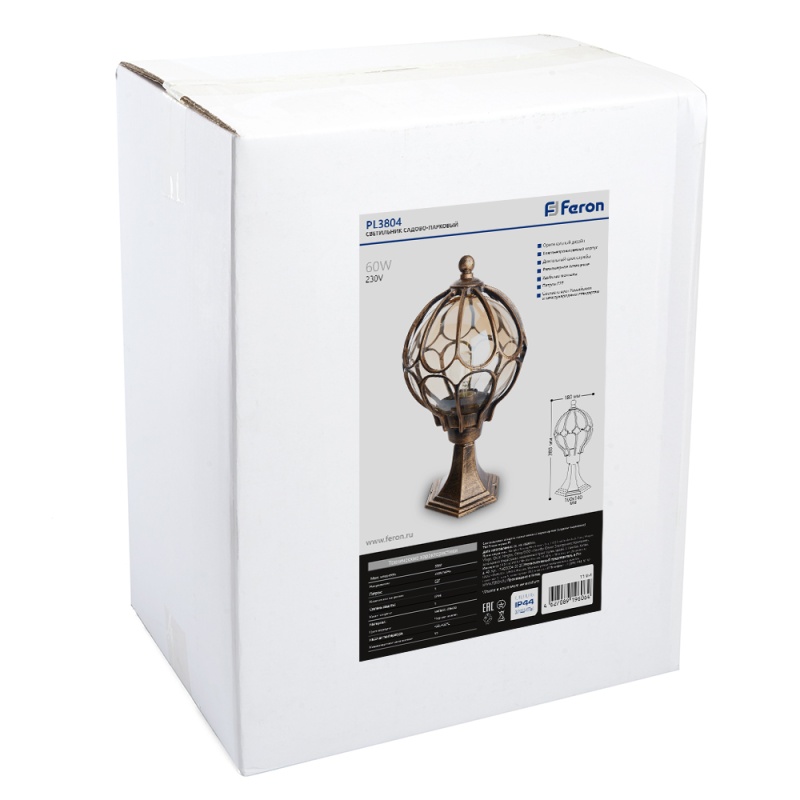 Характеристики Светильник садово-парковый Feron PL3704 круглый на постамент 60W 230V E27, черное золото
