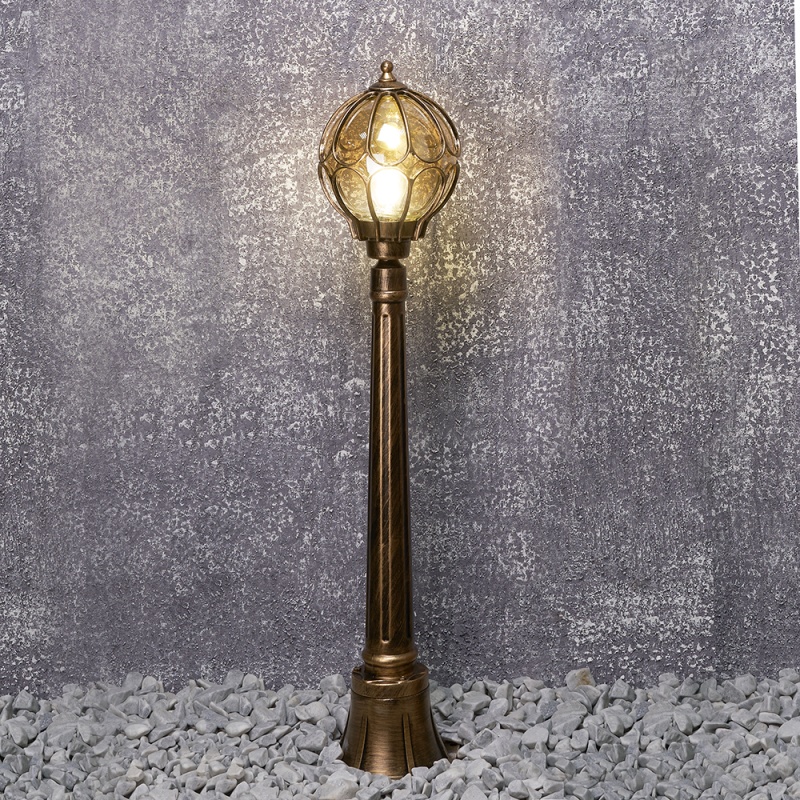 Светильник садово-парковый Feron PL3808 круглый, столб 2*60W 230V E27, черное золото