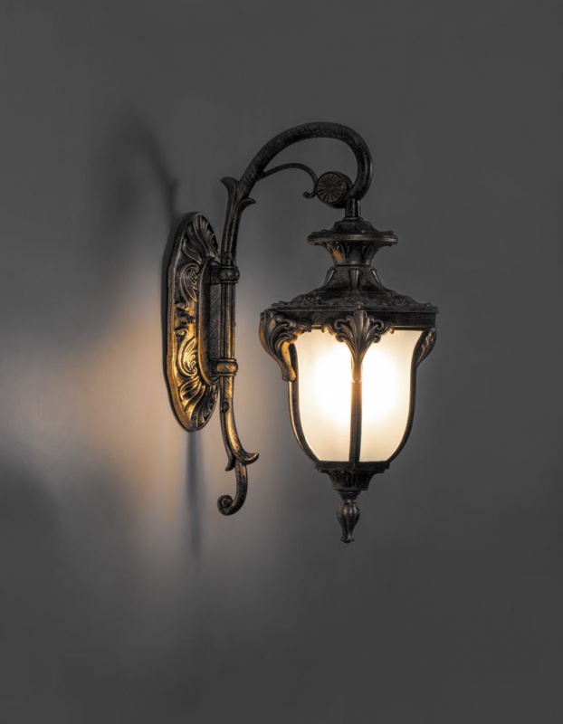 Светильник садово-парковый Feron PL4042 шестигранный на стену вниз 60W 230V E27, черное золото 11422