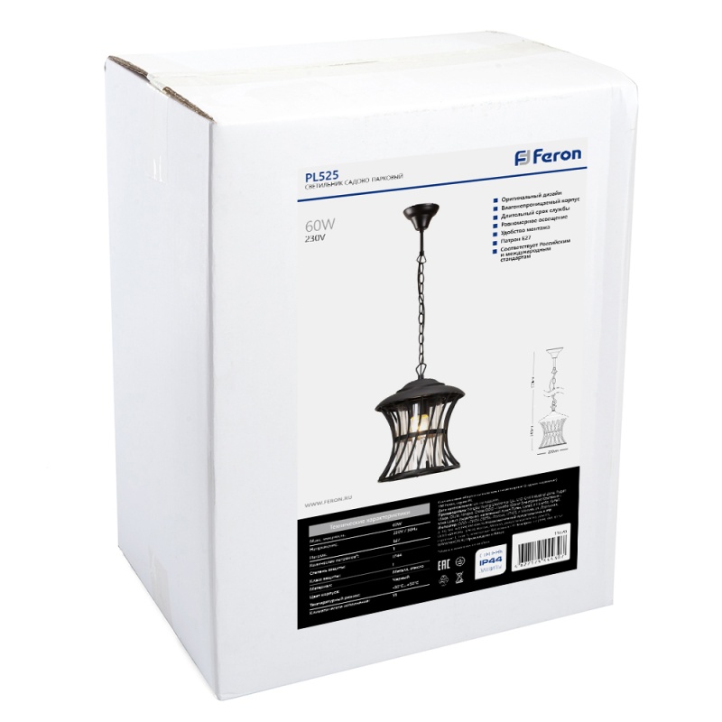 Характеристики Светильник садово-парковый Feron PL525 на цепочке 60W E27 230V, черный