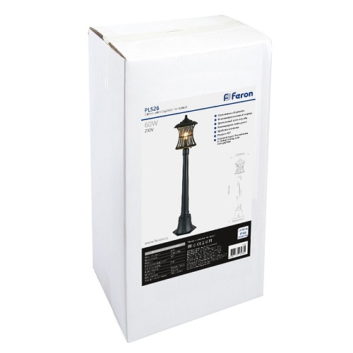 Светильник садово-парковый Feron PL526 столб 60W E27 230V, черный 11621