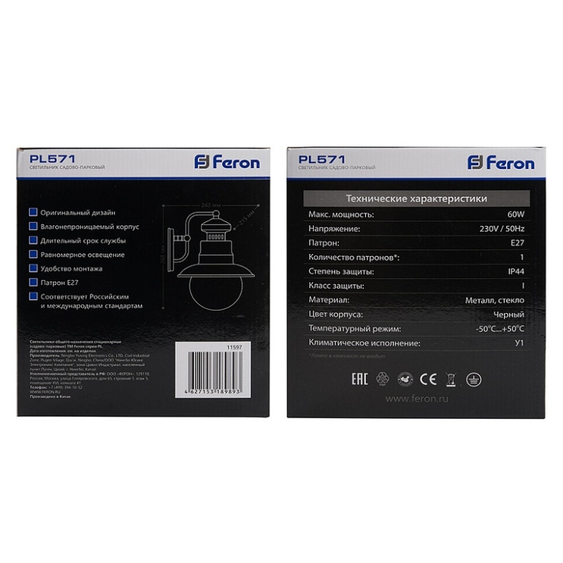 Характеристики Светильник садово-парковый Feron PL575 на цепочке 60W 230V E27, черный