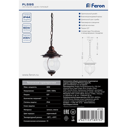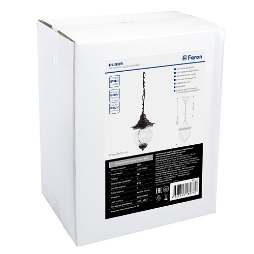 Характеристики Светильник садово-парковый Feron PL595 на цепочке 60W 230V E27, коричневый