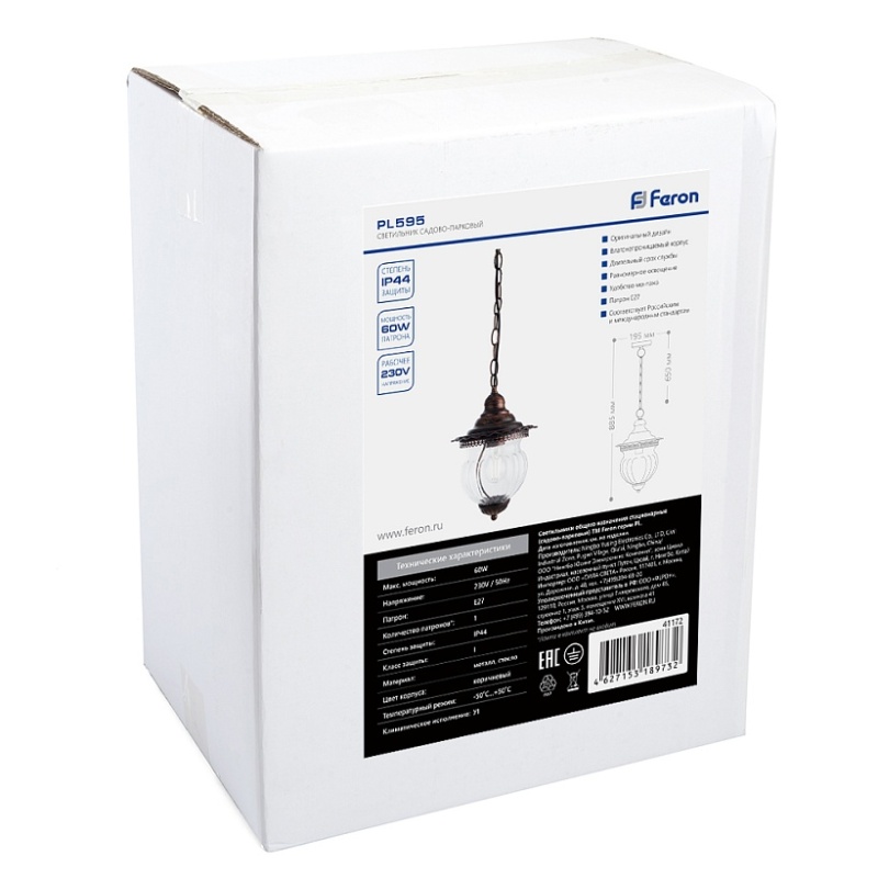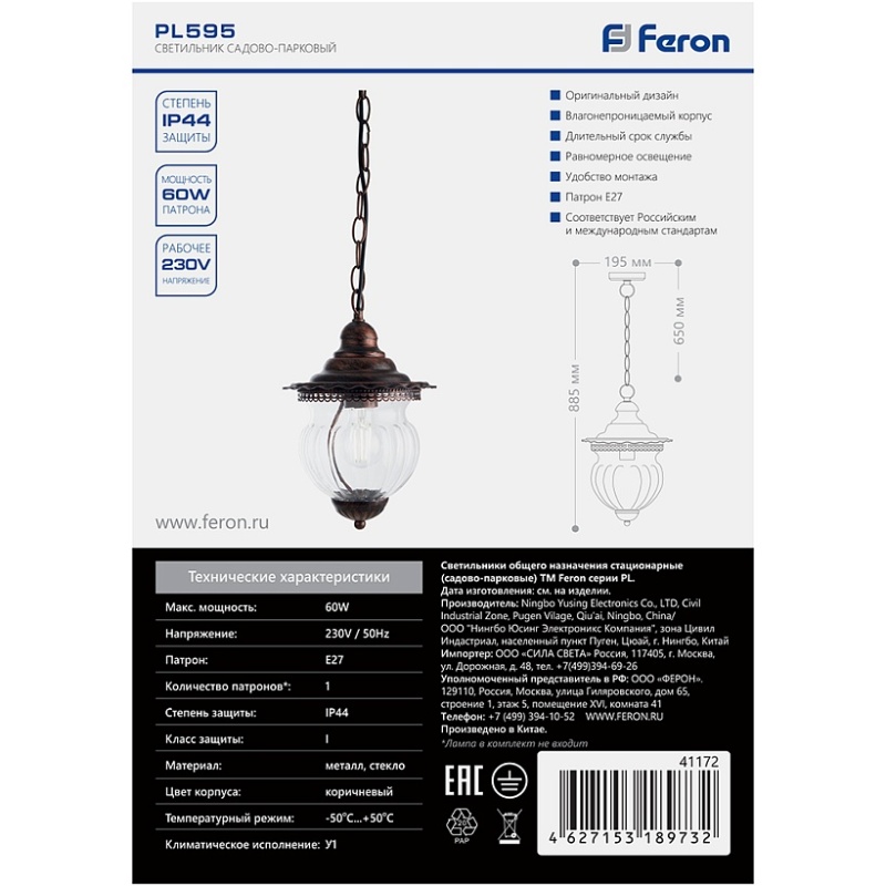 Светильник садово-парковый Feron PL595 на цепочке 60W 230V E27, коричневый