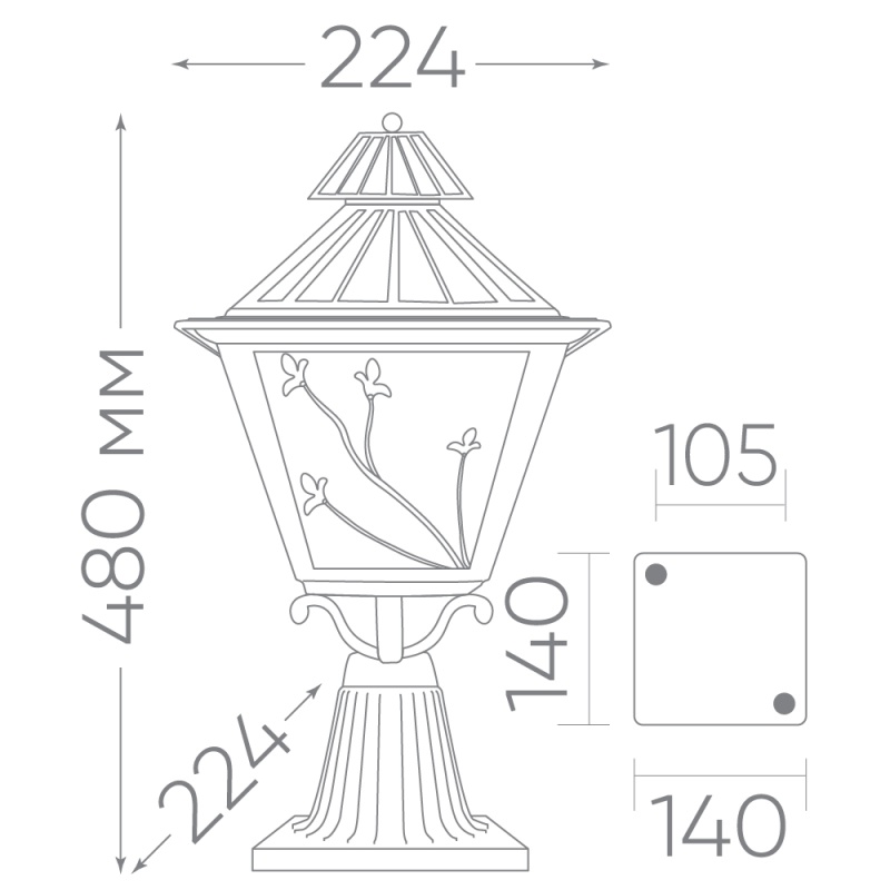 Характеристики Светильник садово-парковый Feron PL634 на постамент 60W 230V E27, черное золото