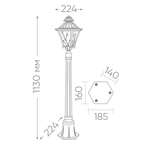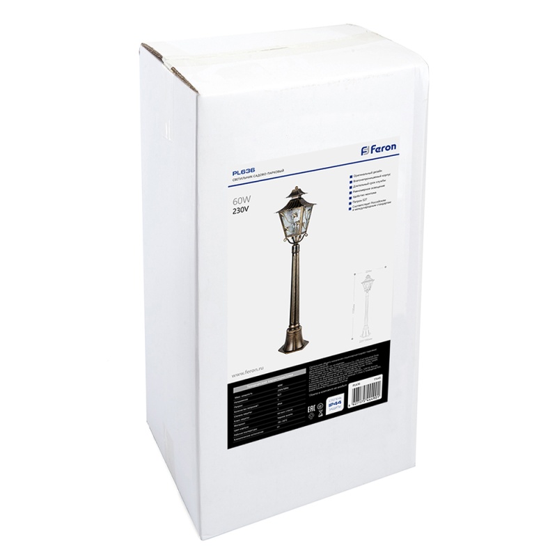 Характеристики Светильник садово-парковый Feron PL636 столб 60W 230V E27, черное золото