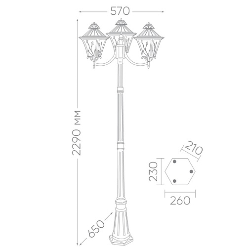 Отзывы о Светильник садово-парковый Feron PL638 столб 3*60W 230V E27, черное золото