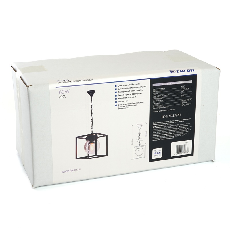 Светильник садово-парковый Feron PL705 на цепочке 60W E27 230V, черный 48384