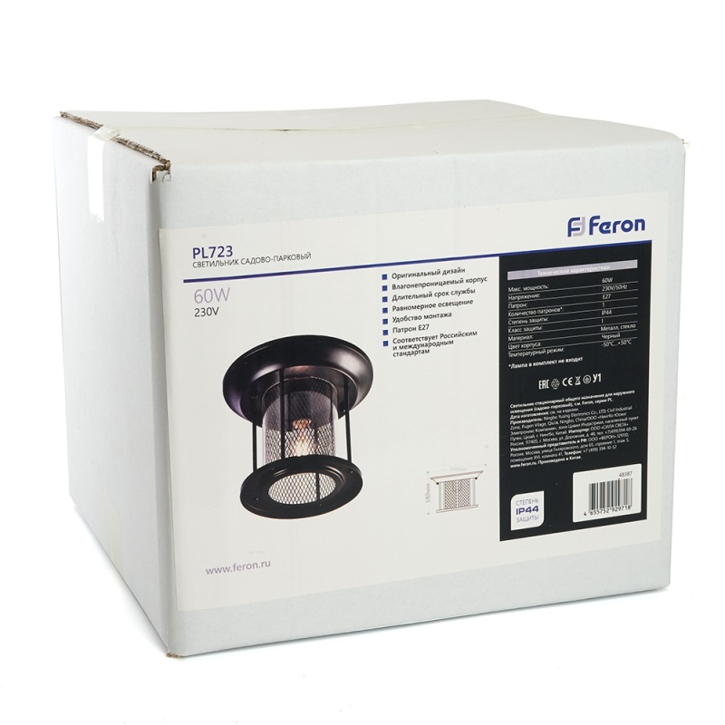 Светильник садово-парковый Feron PL723 на потолок 60W E27 230V, черный 48387