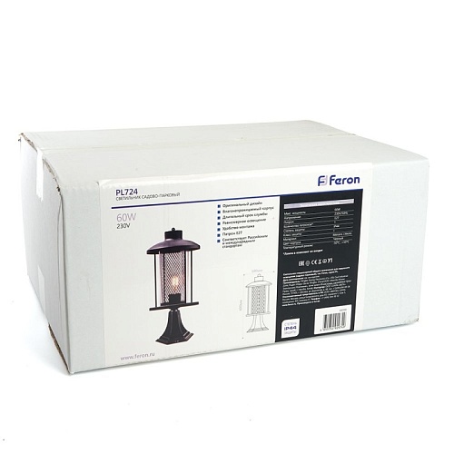 Характеристики Светильник садово-парковый Feron PL724 на постамент 60W 230V E27, черный