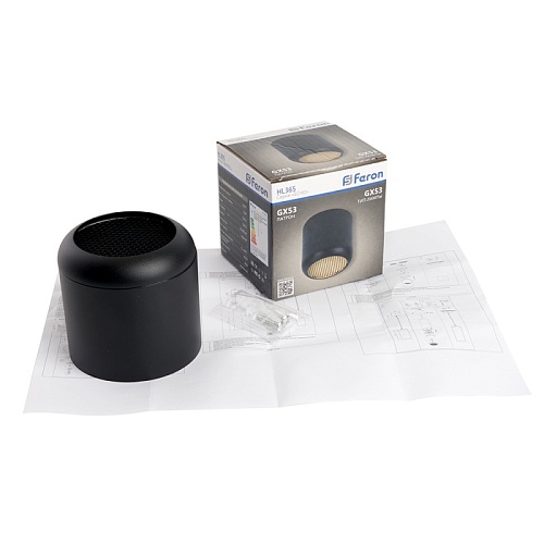 Характеристики Светильник потолочный Feron HL365 Barrel ECHO 12W, 230V, GX53, чёрный, с антибликовой сеточкой