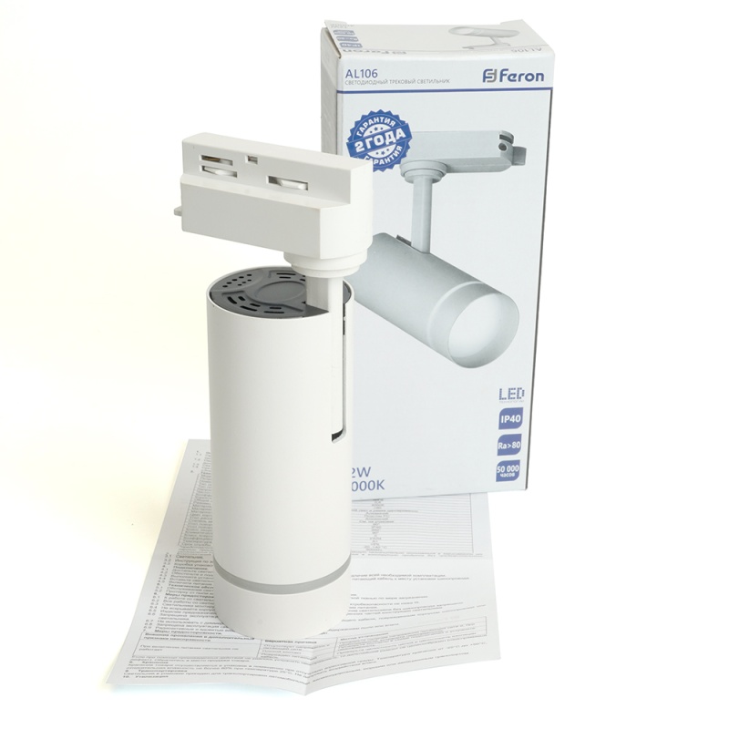 Характеристики Светодиодный светильник Feron AL106 трековый однофазный на шинопровод 12W 2700K 80 градусов белый
