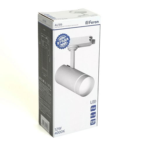 Светодиодный светильник Feron AL106 трековый однофазный на шинопровод 12W 2700K 80 градусов белый