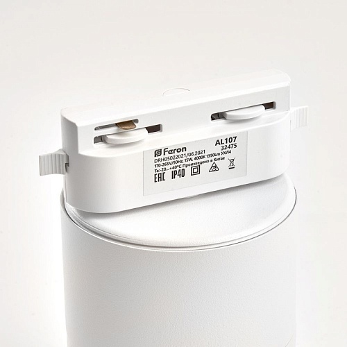Светодиодный светильник Feron AL107 трековый однофазный на шинопровод 15W, 90 градусов, 4000К, белый 32475