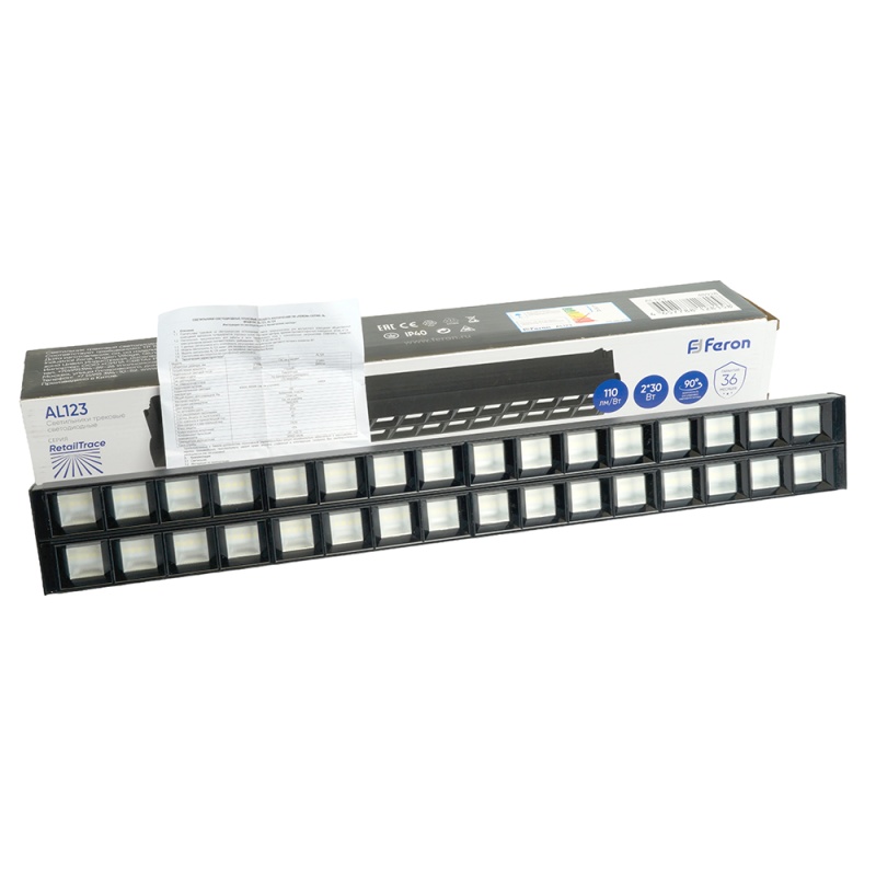 Характеристики Светодиодный светильник Feron AL123 трековый однофазный на шинопровод 2*30W 6500K 60 градусов черный
