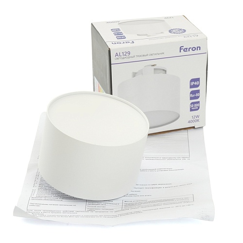 Светодиодный светильник Feron AL129 трековый однофазный на шинопровод 12W 4000K 110 градусов белый 51157