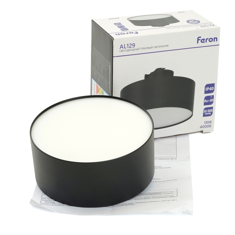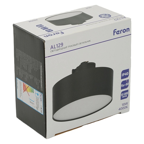 Характеристики Светодиодный светильник Feron AL129 трековый однофазный на шинопровод 18W 4000K 110 градусов черный