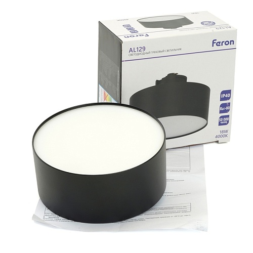 Светодиодный светильник Feron AL129 трековый однофазный на шинопровод 18W 4000K 110 градусов черный 51160
