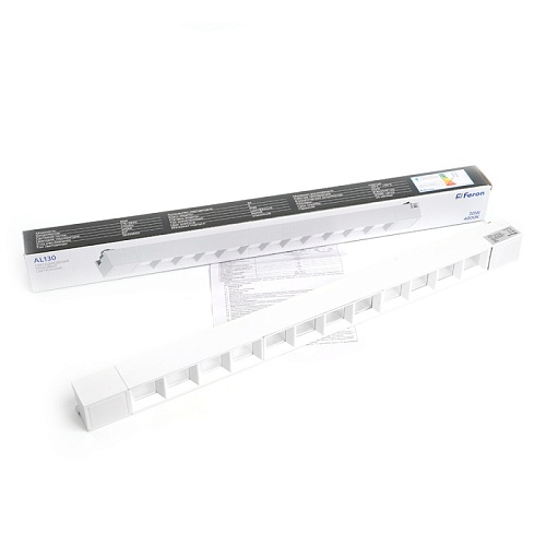 Характеристики Светодиодный светильник Feron AL130 трековый однофазный на шинопровод 30W 4000K 60 градусов белый серия LensLine