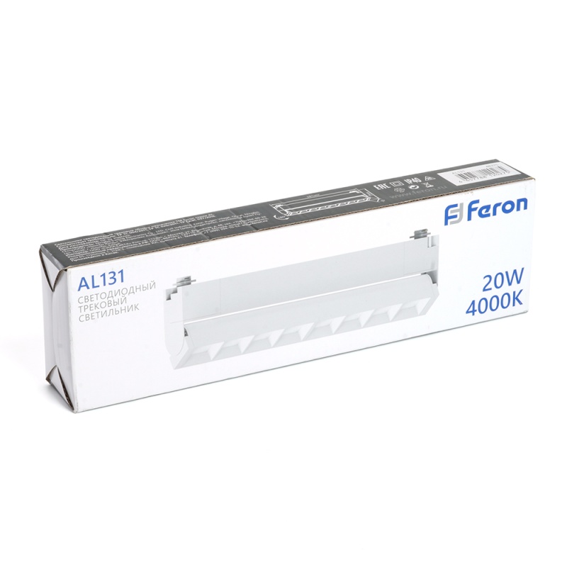 Характеристики Светодиодный светильник Feron AL131 трековый однофазный на шинопровод 20W 4000K 60 градусов белый серия LensFold