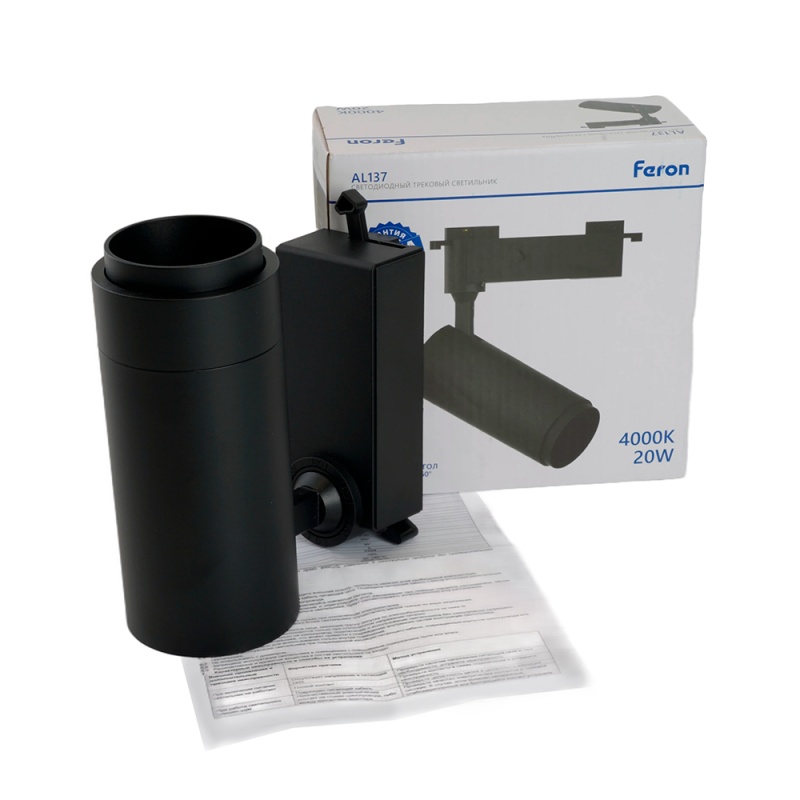 Светодиодный светильник Feron AL137 трековый однофазный на шинопровод 20W 4000K черный, изменяемый угол освещения 15-60град
