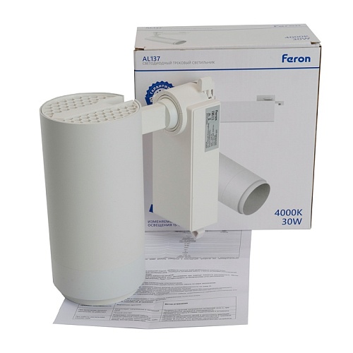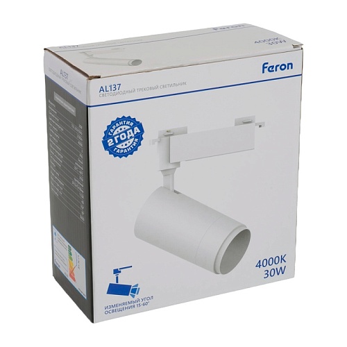 Светодиодный светильник Feron AL137 трековый однофазный на шинопровод 30W 4000K белый, изменяемый угол освещения 15-60град