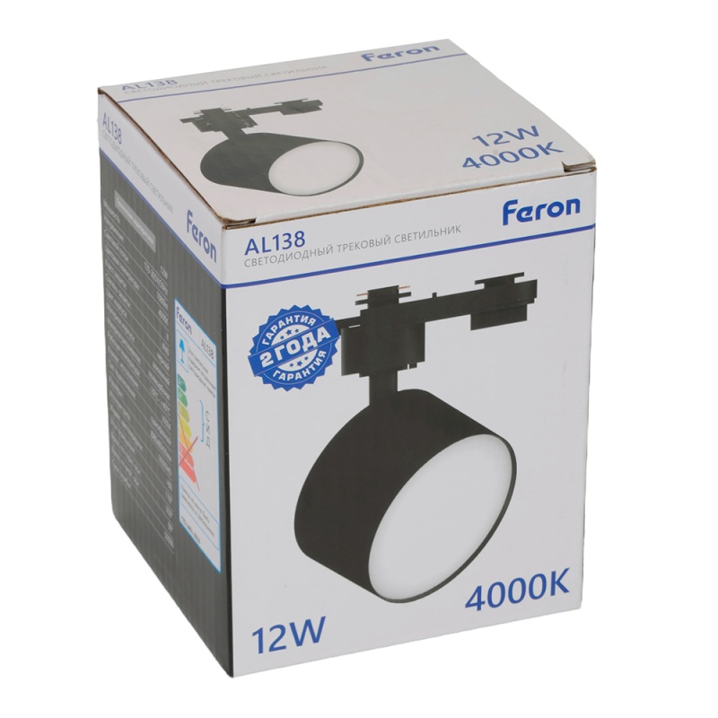 Характеристики Светодиодный светильник Feron AL138 трековый однофазный на шинопровод 12W 4000K 110 градусов черный