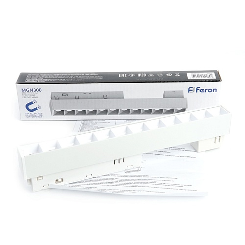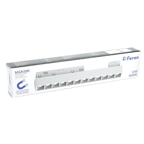 Характеристики Светильник светодиодный Feron MGN300 трековый низковольтный 12W, 1080 Lm, 4000К, 30 градусов, белый серия LensLine