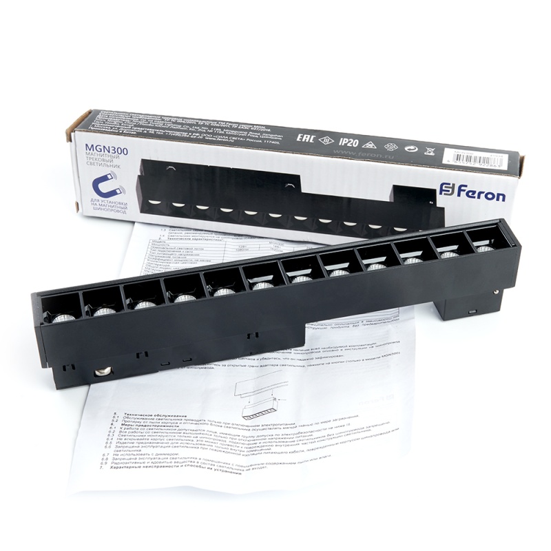 Отзывы о Светильник светодиодный Feron MGN300 трековый низковольтный 12W, 1080 Lm, 4000К, 30 градусов, черный серия LensLine