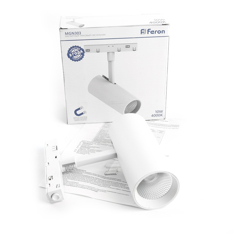 Характеристики Светильник светодиодный Feron MGN303 трековый низковольтный 10W, 900 Lm, 4000К, 35 градусов, белый