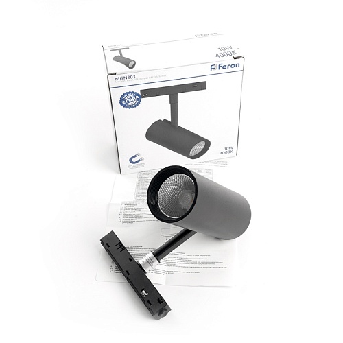Характеристики Светильник светодиодный Feron MGN303 трековый низковольтный 10W, 900 Lm, 4000К, 35 градусов, черный