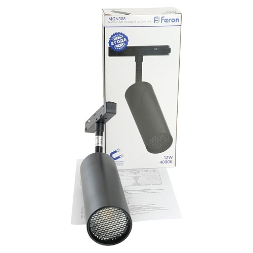 Характеристики Светильник светодиодный Feron MGN308 трековый низковольтный 12W, 960 Lm, 4000К, 35 градусов, черный с антибликовой решеткой