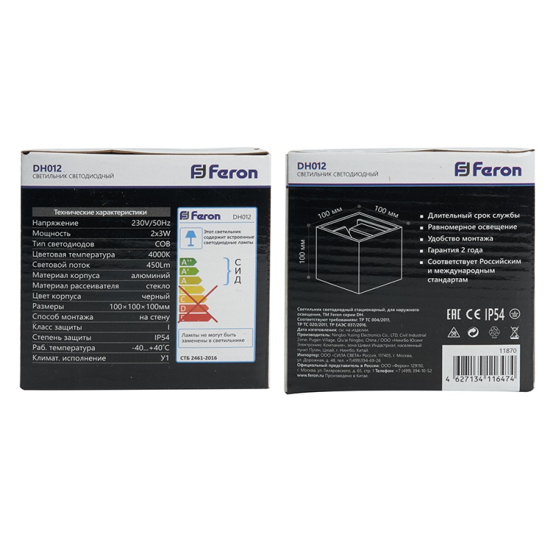 Характеристики Светильник уличный светодиодный Feron DH012, 2*3W, 450Lm, 4000K, черный