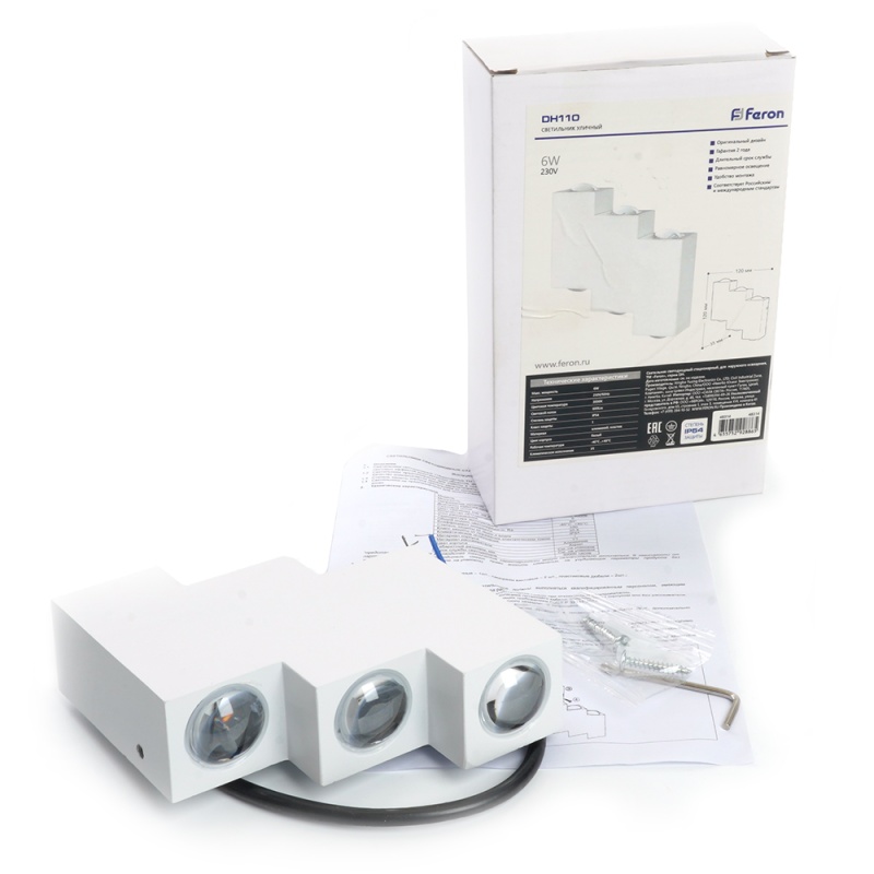 Характеристики Светильник уличный светодиодный Feron DH110, 6*1W, 600Lm, 3000K, белый