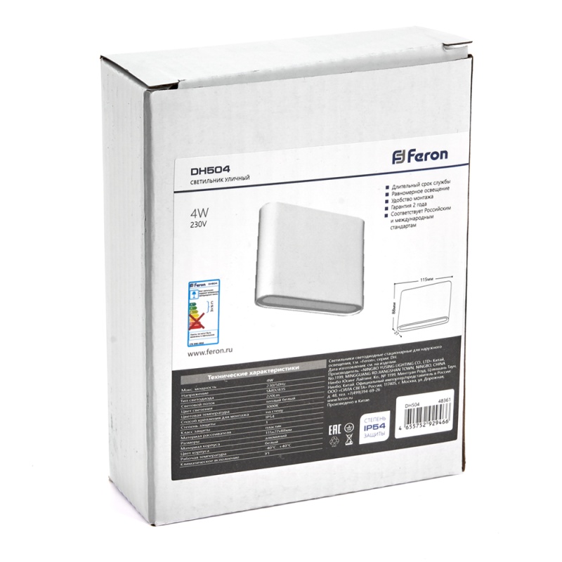 Характеристики Светильник уличный светодиодный Feron DH504, 220lm, 4W, 3000K, белый