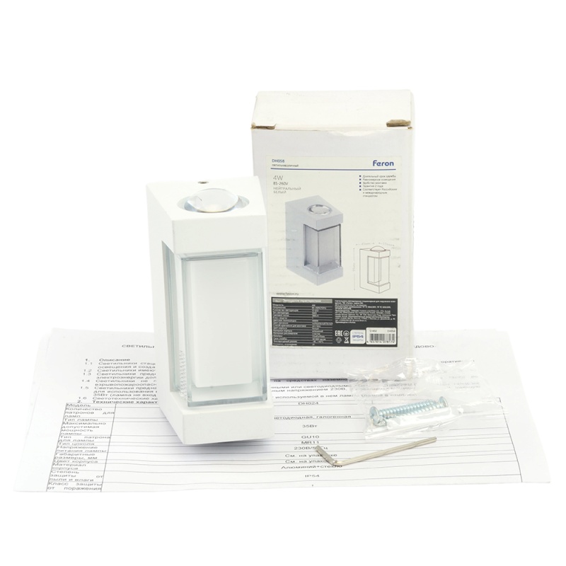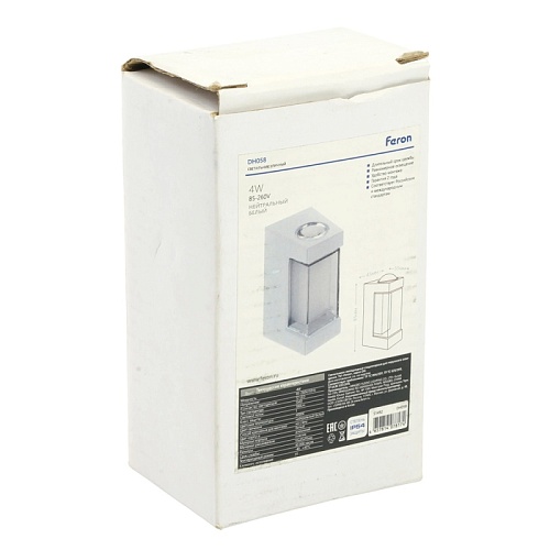 Характеристики Светильник уличный светодиодный Feron DH058, 4W, 380Lm, 3000K, белый