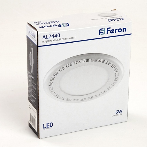 Характеристики Светодиодный светильник Feron AL2440 встраиваемый 6W 4000K и подсветка 4000К белый