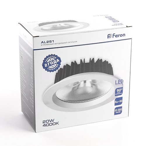 Характеристики Светодиодный светильник Feron AL251 встраиваемый 20W 4000K белый серия MarketBright