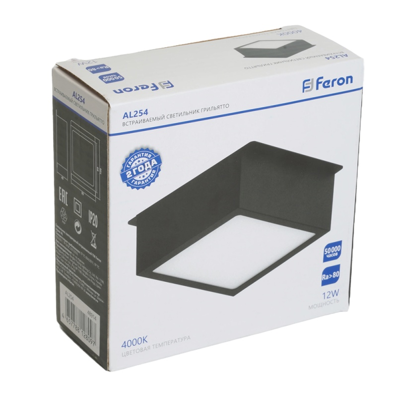 Характеристики Светодиодный светильник Feron AL254 встраиваемый 12W 4000K черный Грильятто