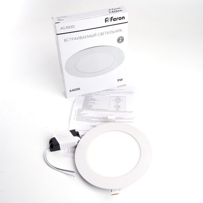 Характеристики Светодиодный светильник Feron AL500 встраиваемый 9W 6400K белый