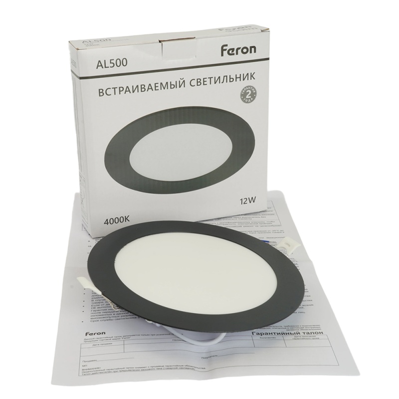Характеристики Светодиодный светильник Feron AL500 встраиваемый 12W 4000K черный