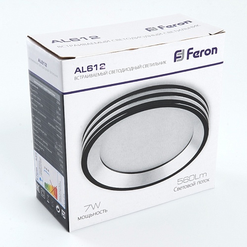 Характеристики Светодиодный светильник Feron AL612 встраиваемый 7W 4000K черный