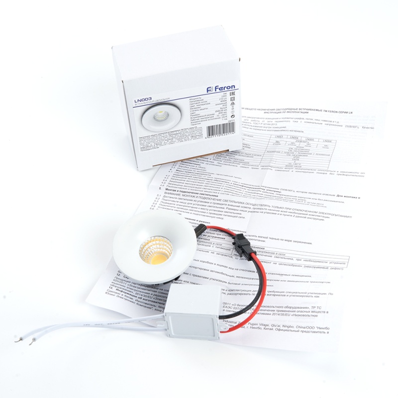 Отзывы о Светодиодный светильник Feron LN003 встраиваемый 3W 4000K белый