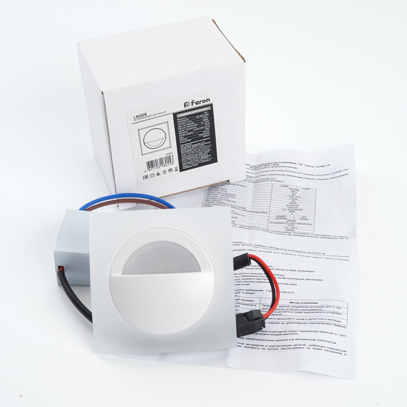 Характеристики Светодиодный светильник Feron LN008 встраиваемый 3W 4000K, белый
