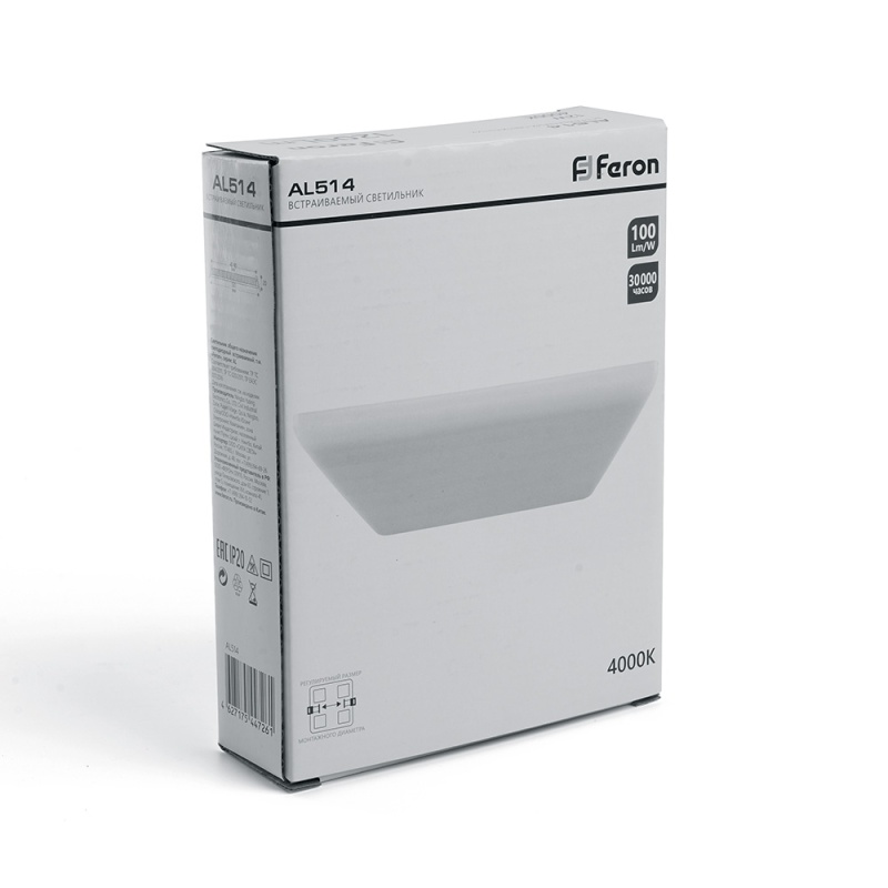 Характеристики Светодиодный светильник Feron AL514 встраиваемый с регулируемым монтажным диаметром (до 190мм) 26W 4000K белый серия FlexyRim