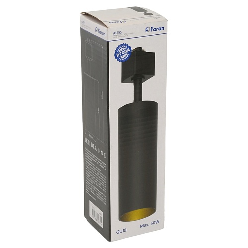 Характеристики Светильник Feron AL155 трековый однофазный на шинопровод под лампу GU10, черный-золото