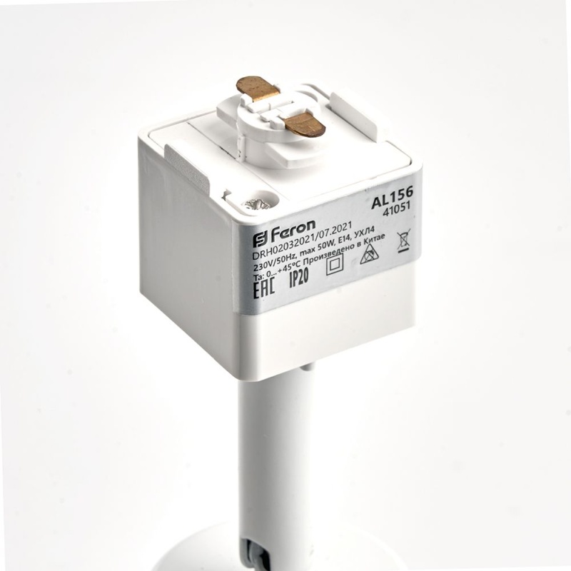 Светильник Feron AL156 трековый однофазный на шинопровод под лампу E14, белый 41051