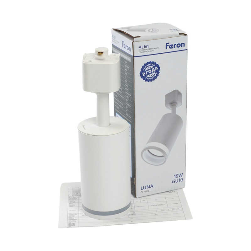 Характеристики Светильник Feron AL161 трековый однофазный на шинопровод под лампу GU10, белый