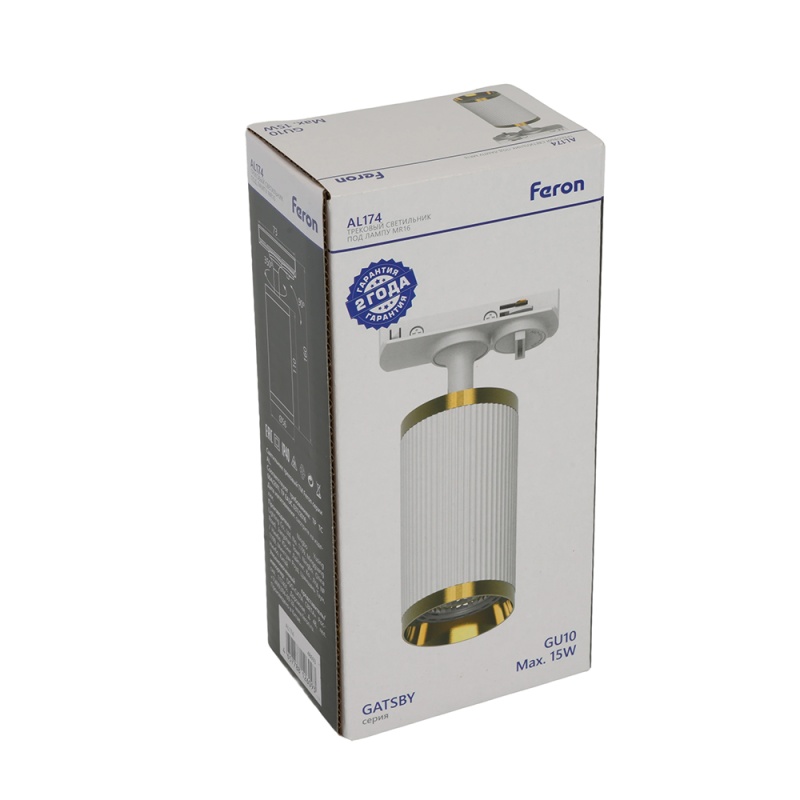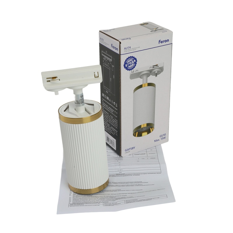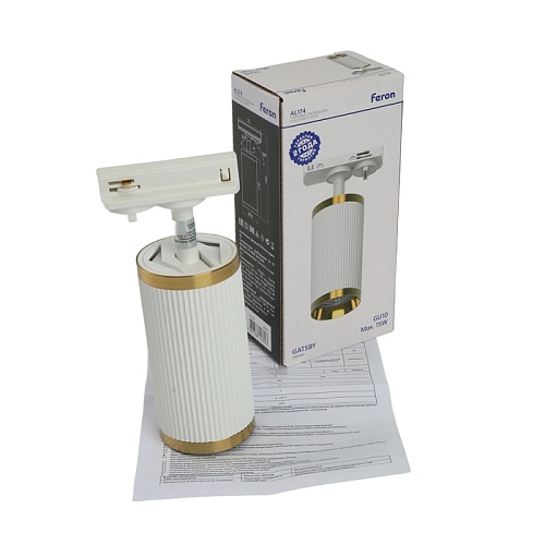 Характеристики Светильник Feron AL174 трековый однофазный на шинопровод под лампу GU10, белый античное золото