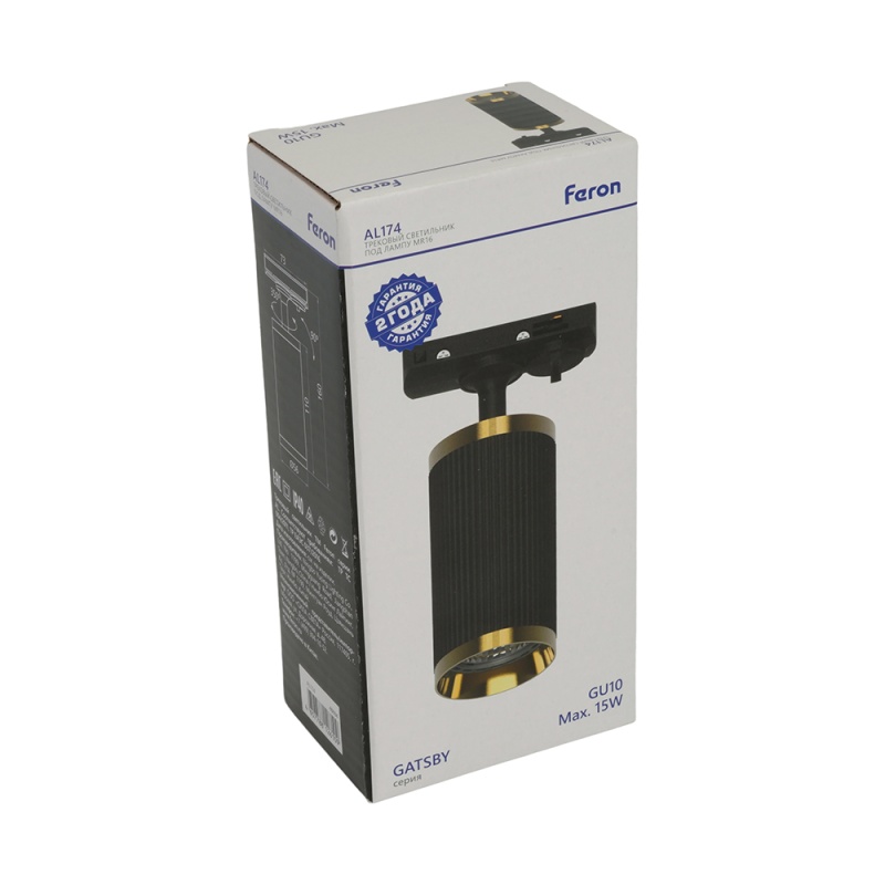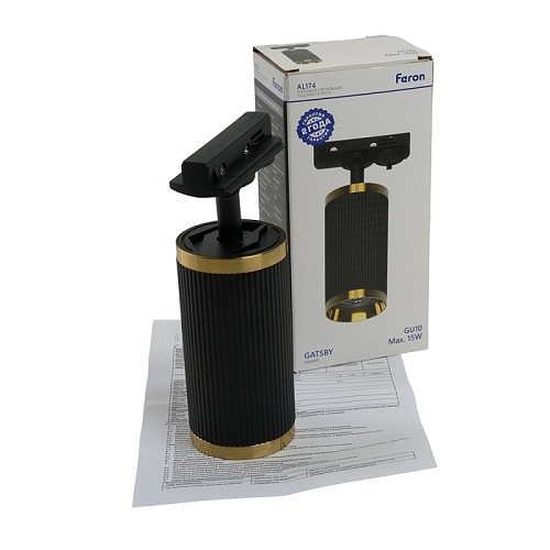 Характеристики Светильник Feron AL174 трековый однофазный на шинопровод под лампу GU10, черный античное золото